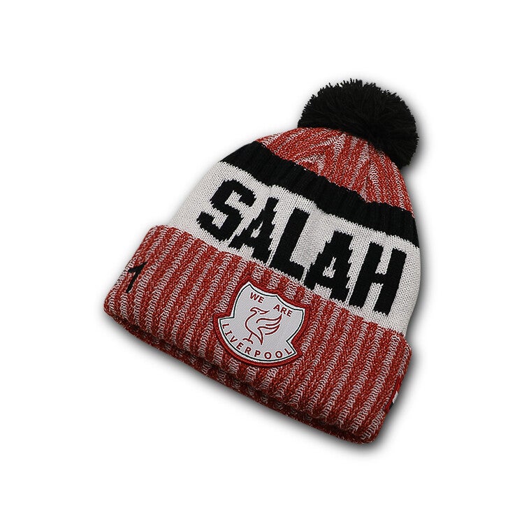 Mo Salah Liverpool Beanie Hat, features: Fleece Lined, Stretch knit , Red white & Black beanie, with woven patch We Are Liverpool Crest & black pom pom, embroidered player number and national flag