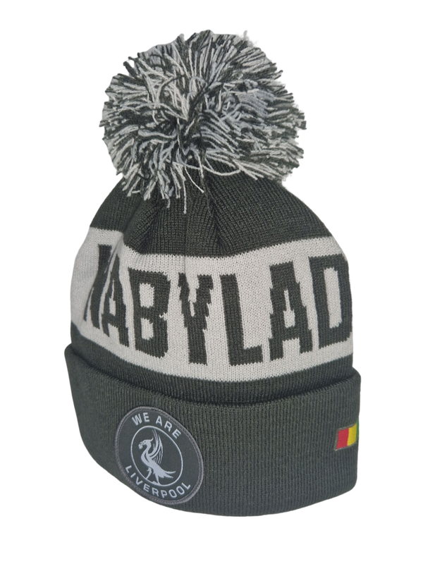 Naby Keita Beanie, features: Stretch knit , light & dark grey beanie, with woven We Are Liverpool Crest, Guinea flag & embroidered player number, light and dark grey pom pom & player name.