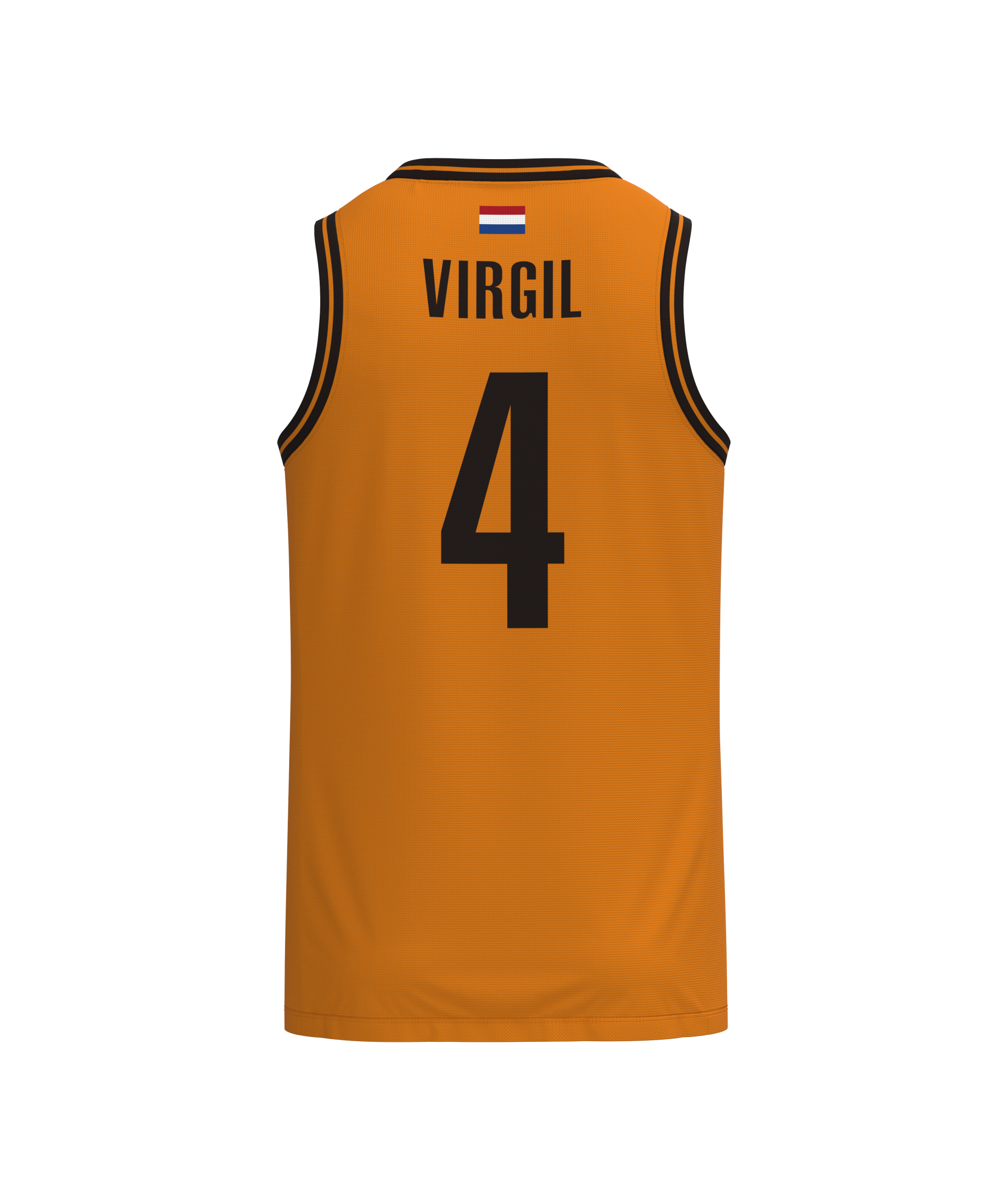 Virgil Van Dijk Liverpool basketball jersey, features: 100% polyester , Orange & Black jersey, with printed We Are Liverpool Crest & Gerrard inspired goal v Olympiacos NBA logo, Player name & number to back and Liverpool text & Number to front, with Dutch flag to the rear